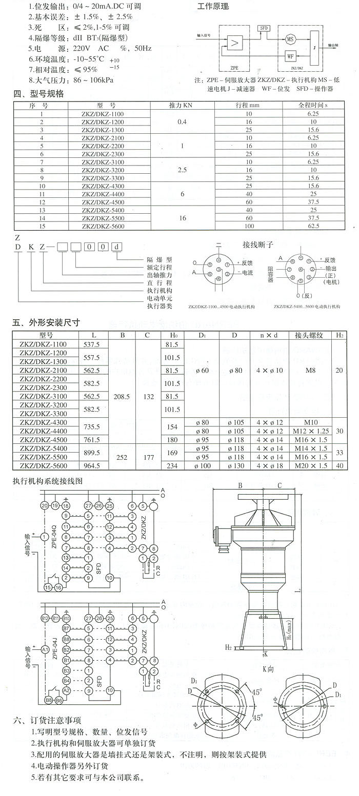 ZKZ/DKZ型電動(dòng)執(zhí)行機(jī)構(gòu)有普通型與隔爆型兩種。隔爆型可用于無腐蝕的IIA、IIIB類,且溫度組別為T1, T2. T3的氣體環(huán)境。