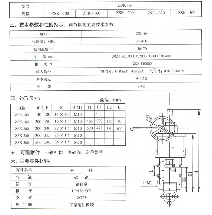 ZSK系列氣動活塞式執(zhí)行機(jī)構(gòu)是控制閥用大推力驅(qū)動裝置,適用于高溫、高壓、大壓差以及需要嚴(yán)密關(guān)閉的閥門配套使用。此機(jī)構(gòu)采用無彈簧雙作用式執(zhí)行機(jī)構(gòu)的比例動作.即輸人信號與行程成比例的對應(yīng)關(guān)系,配用電磁閥可實(shí)現(xiàn)電控氣動關(guān)開位式動作,被廣泛應(yīng)用于各類控制閥需大推力的場合。
