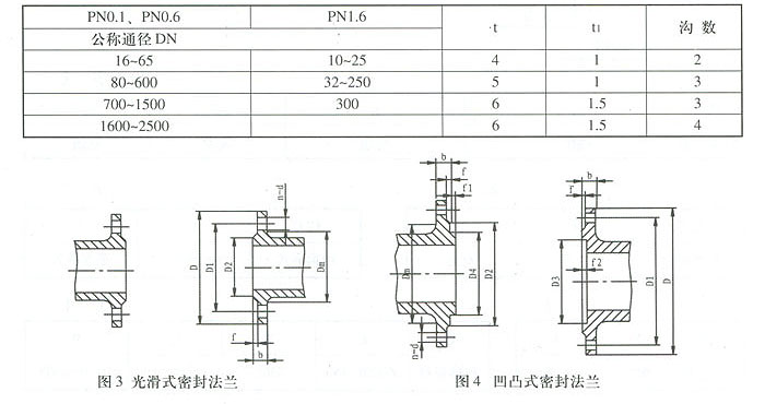 公稱壓力PNO.1、PNO.6, PN 1.6的調(diào)節(jié)閥法蘭采用光滑式.與之配用的法蘭也為光滑式,密封型式見圖3及表4.